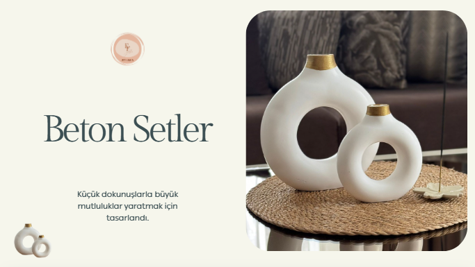 Alçı içermeyen, tamamen doğal ve uzun ömürlü objelerimizle evinizde küçük ama güçlü bir değişim yaratıyoruz. Biz sadece dekorasyon ürünü değil, yaşam alanlarınıza huzur ve zarafet taşıyan "o parçayı" üretiyoruz.